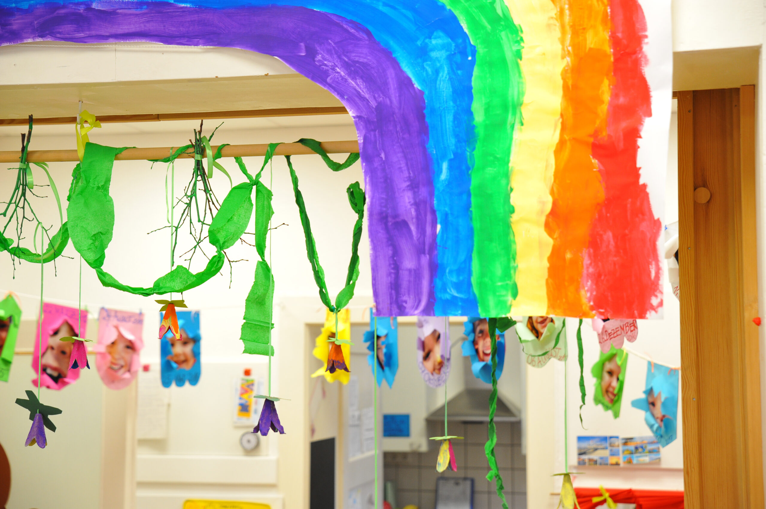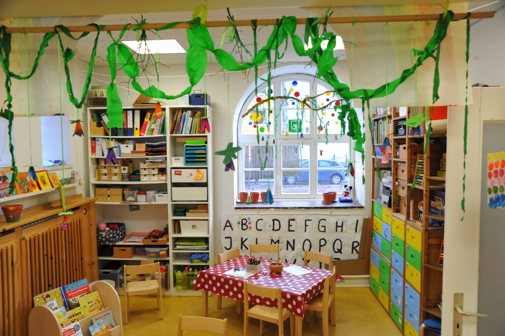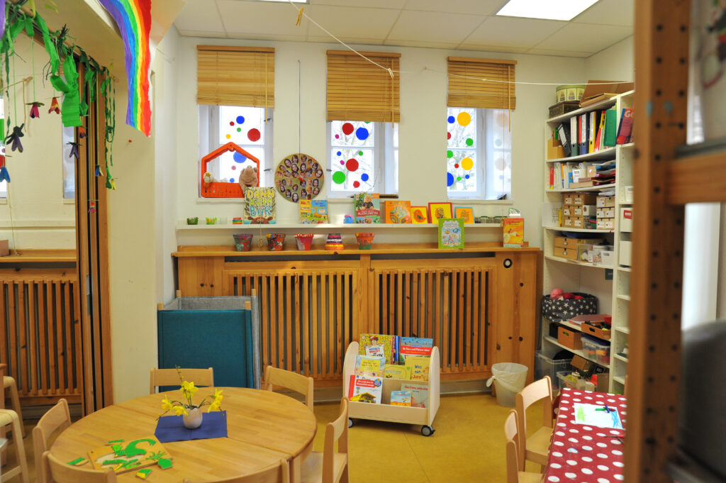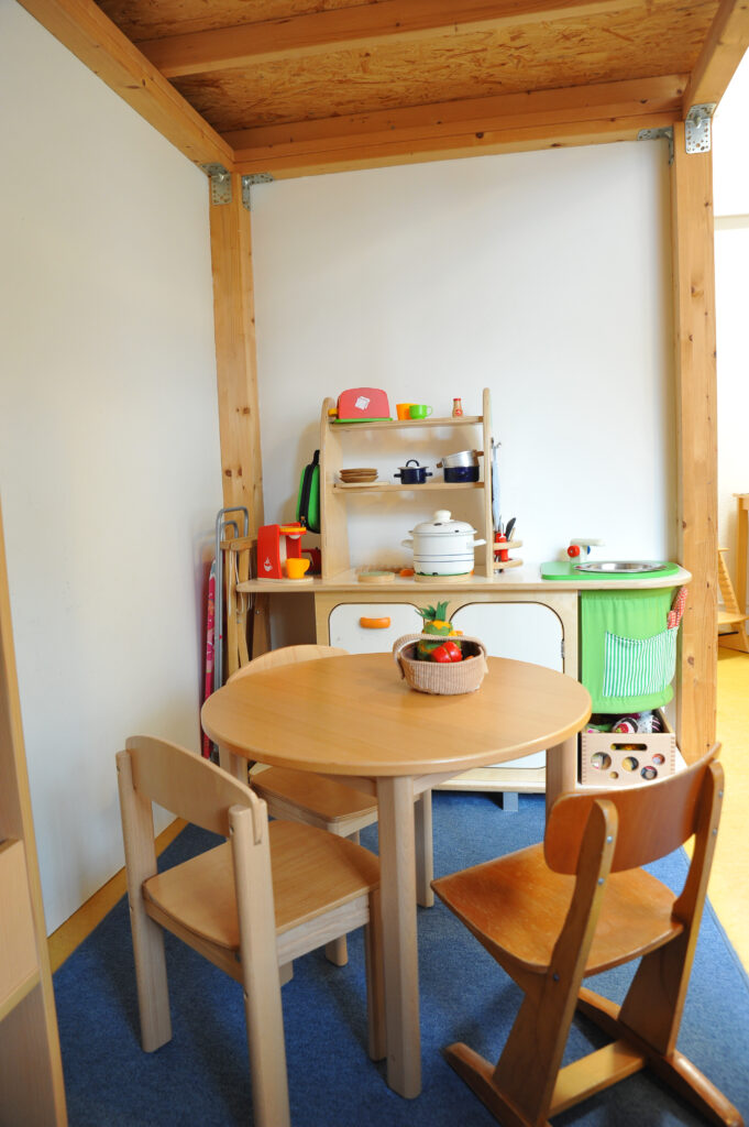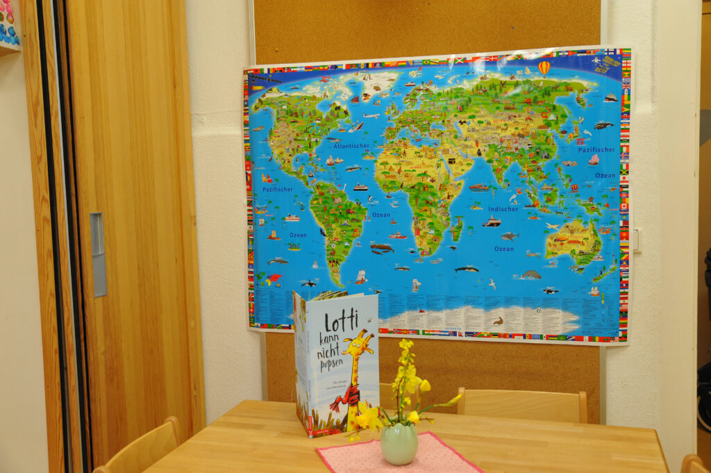 Zur Einrichtung gehört nicht nur altersgerechtes Material, auf das die Kinder zurückgreifen können. Auch ein weiterer Raum mit Hochebene bietet tolle Spielmöglichkeiten und zusätzliche Angebote. Außerdem steht ein großzügiges Außengelände mit diversen Kletter- und Spielgeräten, die die Kinder gerne und bei jedem Wetter nutzen, zur Verfügung.