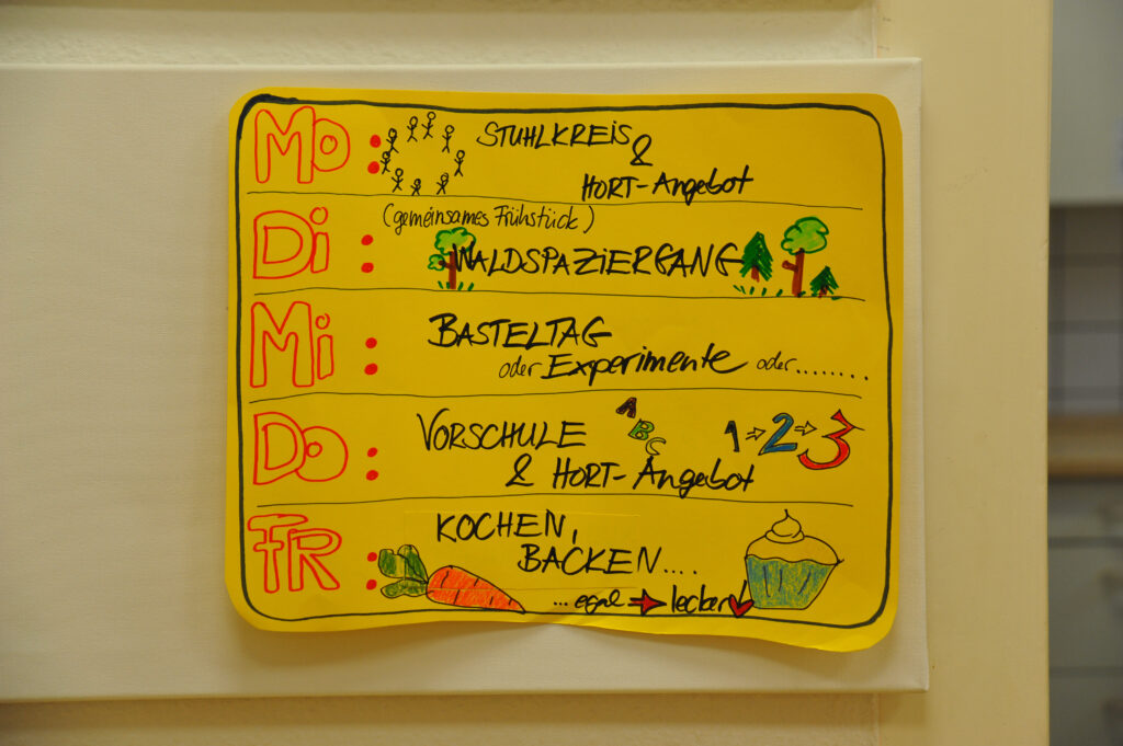 Wir haben keine Schließzeiten (außer zwischen den Jahren und unterjährige Brückentage) und bieten eine tägliche Betreuungszeit von maximal 7:45 bis 16:30 Uhr an.